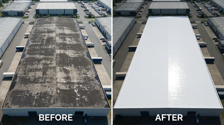 Bedrijfsgebouwen hebben vaak grote platte daken die dagelijks worden blootgesteld aan zon, regen en temperatuurschommelingen. Na verloop van tijd kan de dakbedekking verouderen en kunnen lekkages of hoge onderhoudskosten ontstaan.