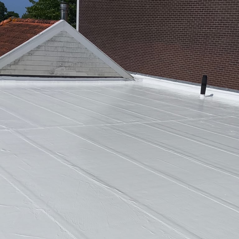 Siliconen dakcoating | Plat dak waterdicht maken | Dakbedekking zonder vervangen | Bitumen dak coaten | Dakcoating Groningen | Dakrenovatie zonder sloop | Dakreflectie | TSR dakcoating | Dakcoating Drenthe | Dakcoating Friesland | Duurzaam dak | Vloeibare dakbedekking